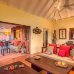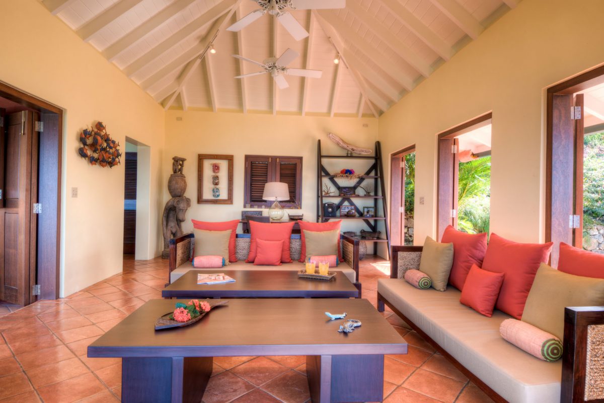 Designed around an open patio and covered porches, you will find privacy and shade when desired and fun in the sun with our beautiful Caribbean weather and cooling trade winds. This villa is all about the exotic with it’s rich colours and eclectic collection of deign and artifacts. Rich dark wood louvred doors throughout lend an elegant feel.